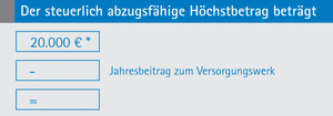 Freiberufler sind meist in Kammern organisiert. Teilweise ist an die Kammerzugehörigkeit eine Mitgliedschaft in einem berufsständischen Versorgungswerk gebunden. Die Beiträge hierfür sind vom steuerlich abzugsfähigen Höchstbeitrag von 20.000 € pro Person abzuziehen.