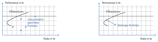 Die Menge der effizienten Depots ist im Risiko/Rendite-Diagramm nach oben hin begrenzt. Diese obere Grenze wird Effizienzgrenze genannt (in der Abbildung als Effizienzkurve bezeichnet). Ein Depot, das auf der Effizienzgrenze liegt, nennt man effizient. Effiziente Depots haben bei einem bestimmten Risiko die höchste Renditeerwartung bzw. bei einer bestimmten Renditechance das kleinste Risiko. Es existiert dann kein anderes Depot, das bei einem bestimmten Risiko mehr Renditechancen bietet bzw. kein Depot, das bei mindestens gleichen Renditechancen weniger Risiko birgt.
